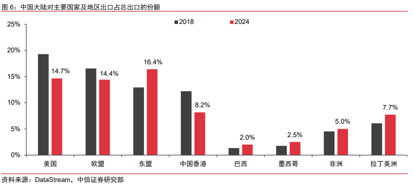 4)在经济不确定性加剧的背景下,中国与“一带一路”沿线国家的合作逆势而上,成为稳定全球经济的关键力量。中国与东盟已连续多年互为最大贸易伙伴,双边贸易额持续攀升,同时在数字经济、绿色能源等新兴领域也展开了深度合作,共同开拓增长新赛道。《区域全面经济伙伴关系协定》(RCEP)降低了贸易壁垒,正在促进区域内产业链、供应链的深度融合。中国、印度、印度尼西亚等经济体,均在积极刺激消费、提振民间投资,努力构建内外需并重的均衡发展模式。