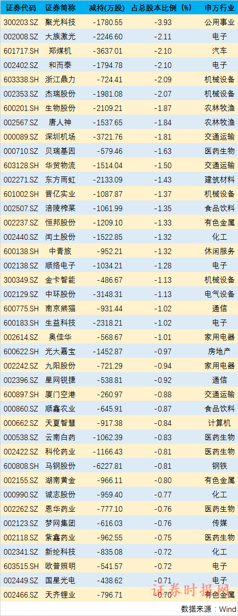 此外,大族激光、郑煤机、和而泰、浙江鼎力、杰瑞股份等被北向资金减持的股数占总股本比例也不小,均超2%。