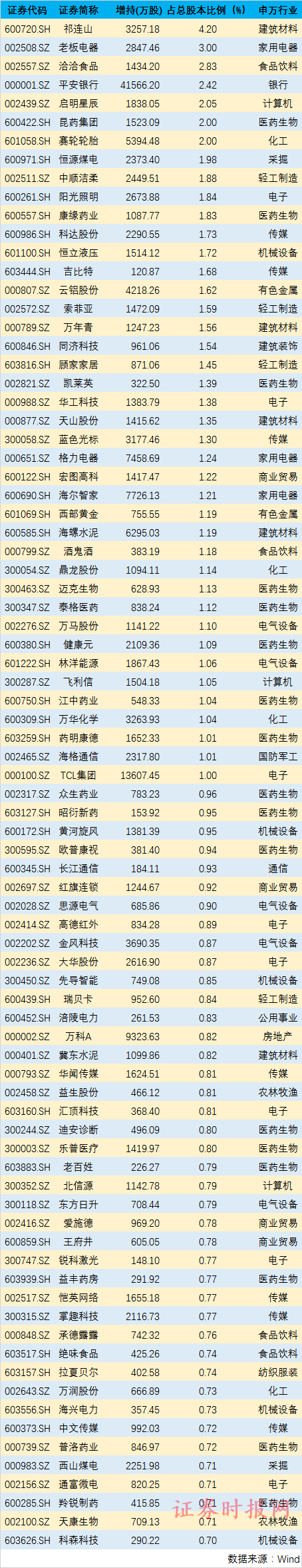 其中,祁连山获北向资金增持3257.18万股,增持股数占总股本比例达到4.2%,是近期北向资金增持股数占总股本数最多的个股。祁连山中报数据显示,公司2019上半年实现营业总收入29.1亿,同比增长23.9%;实现归母净利润5亿,同比增长128.8%。