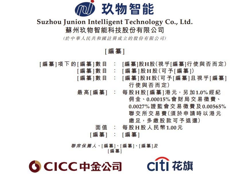 据港交所1月19日披露,苏州玖物智能科技股份有限公司(简称:玖物智能)向港交所主板递交上市申请书,中金公司、花旗为联席保荐人。