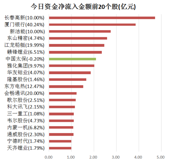 5、长春高新主力资金净流入4.73亿元居首
