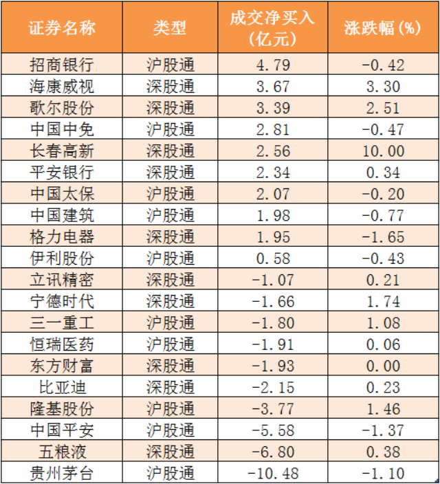 7、今日沪股通和深股通前十大活跃股
