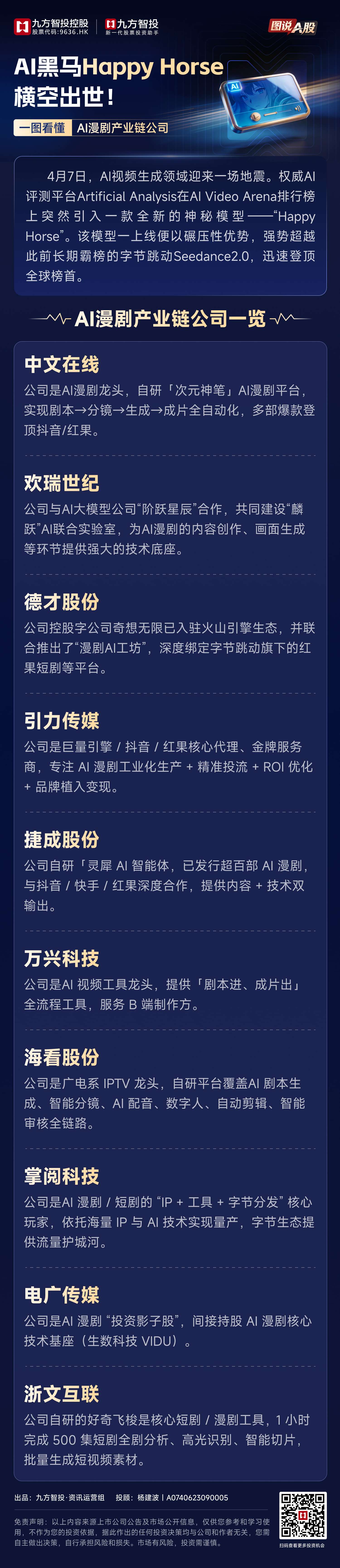AI黑马Happy Horse横空出世!一图看懂AI漫剧产业链公司