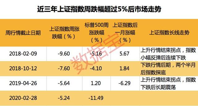 2月收官周,上证指数累计下跌5.24%,单周跌幅自2017年以来第四次超过5%。以每周最后一个交易日计,前三次分别发生在2018年2月9日,2018年10月12日和2019年4月26日。