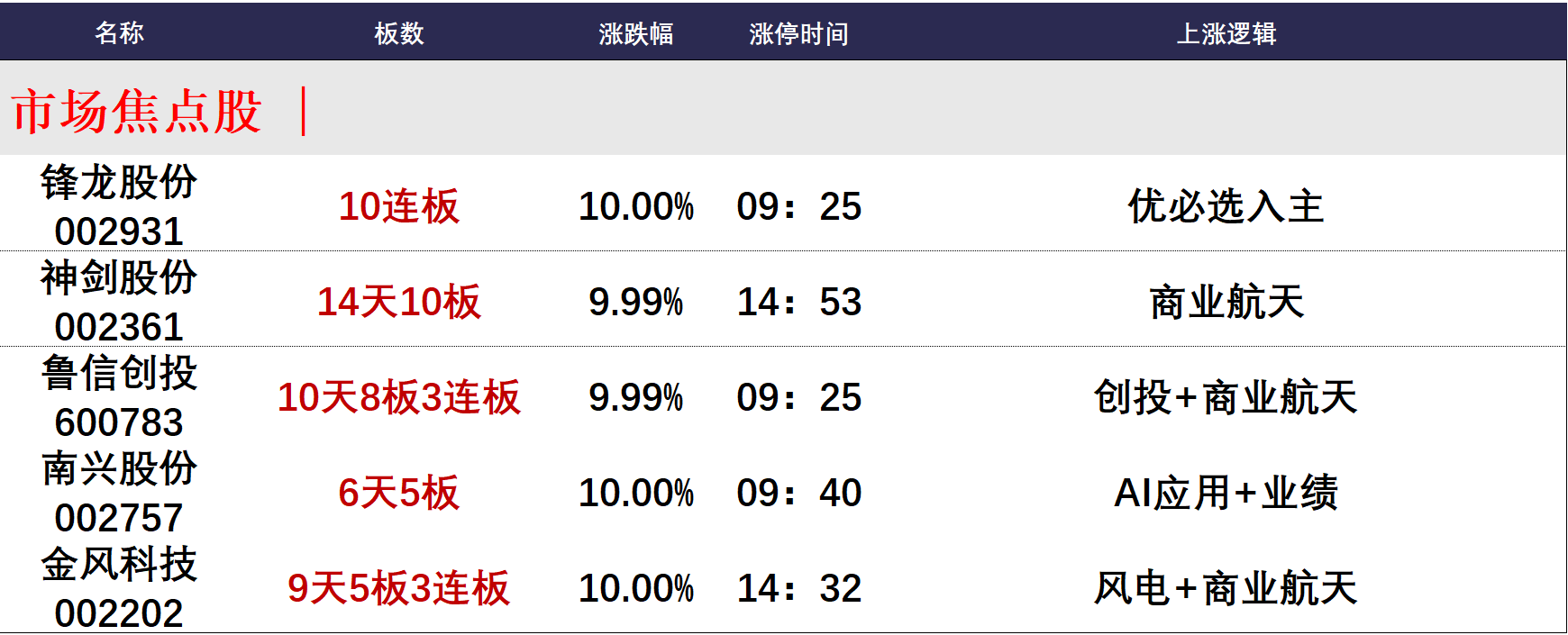 个股方面,高位连板股如胜通能源、雷科防务、友邦吊顶、城建发展等均断板,除开连续一字涨停的锋龙股份,市场连板高度降至4连板。20CM个股表现活跃,志特新材走出4连板激活赚钱效应,爱朋医疗、谱尼测试4天3板,邵阳液压、必贝特2连板。