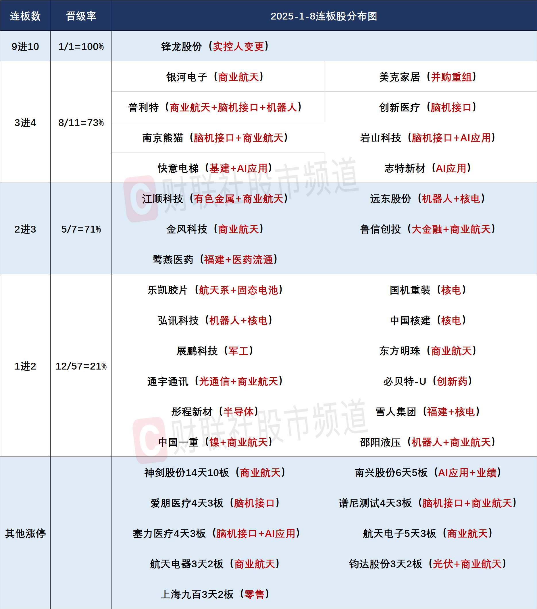 1月8日连板分析:名中带“航天”的个股遭哄抢