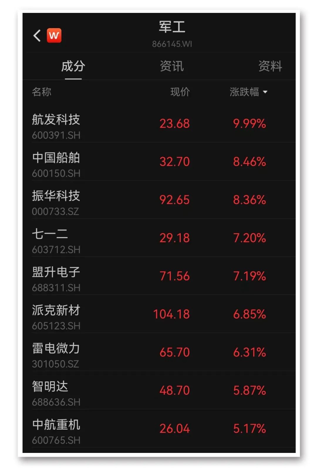 军工板块表现强势,宏达电子涨超16%,振华科技、盟升电子等跟涨。