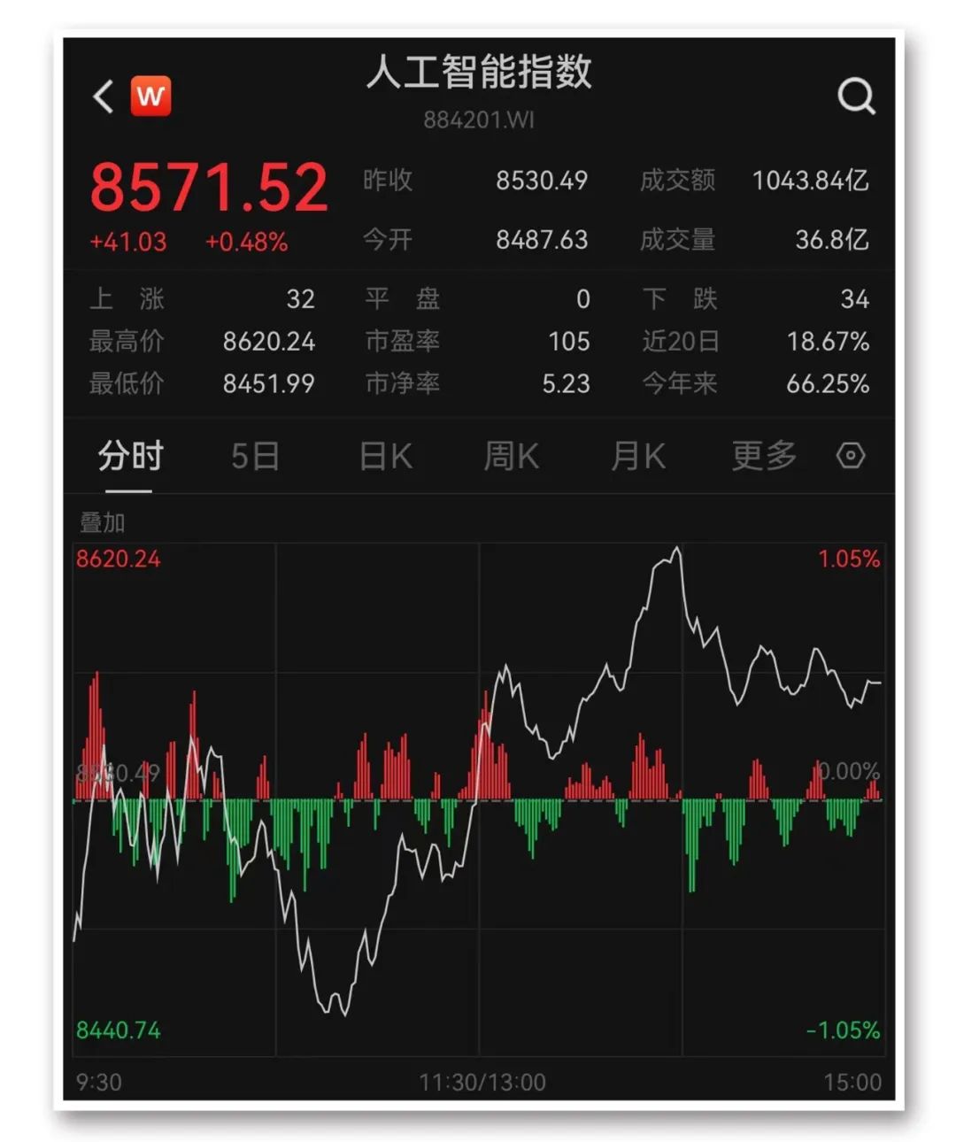 在此消息的刺激下,AI板块下午发力攀升,收盘上涨0.48%。