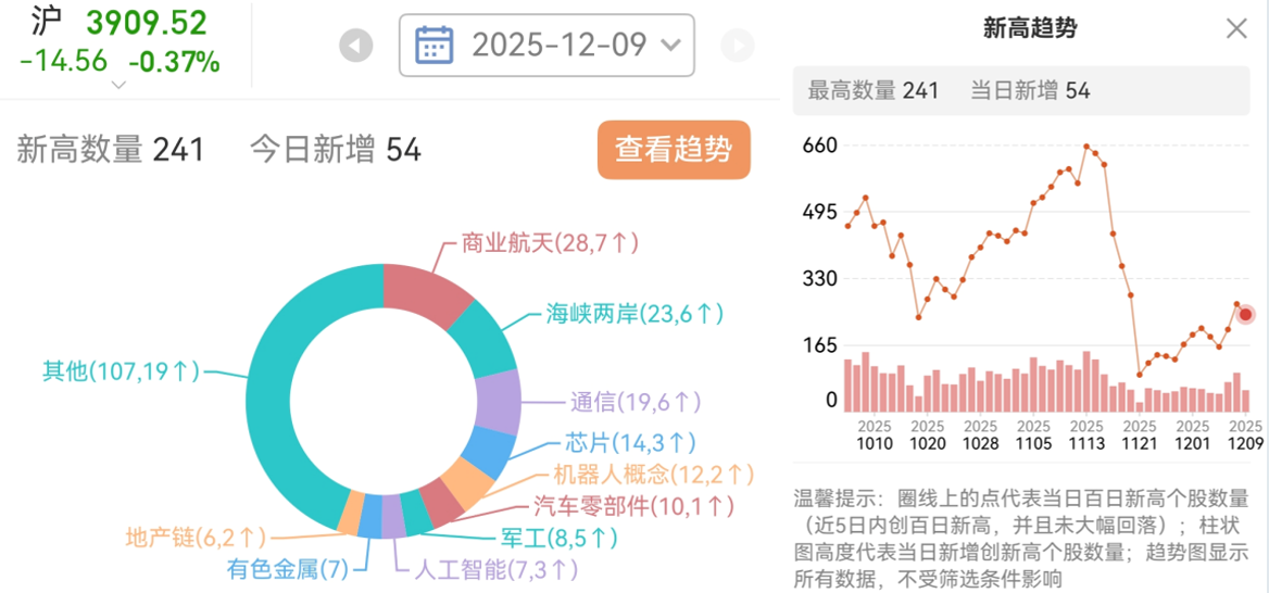 从百日新高去看,板块新高数量前4:商业航天>福建>通信(光模块为主)>芯片(国产自主可控)