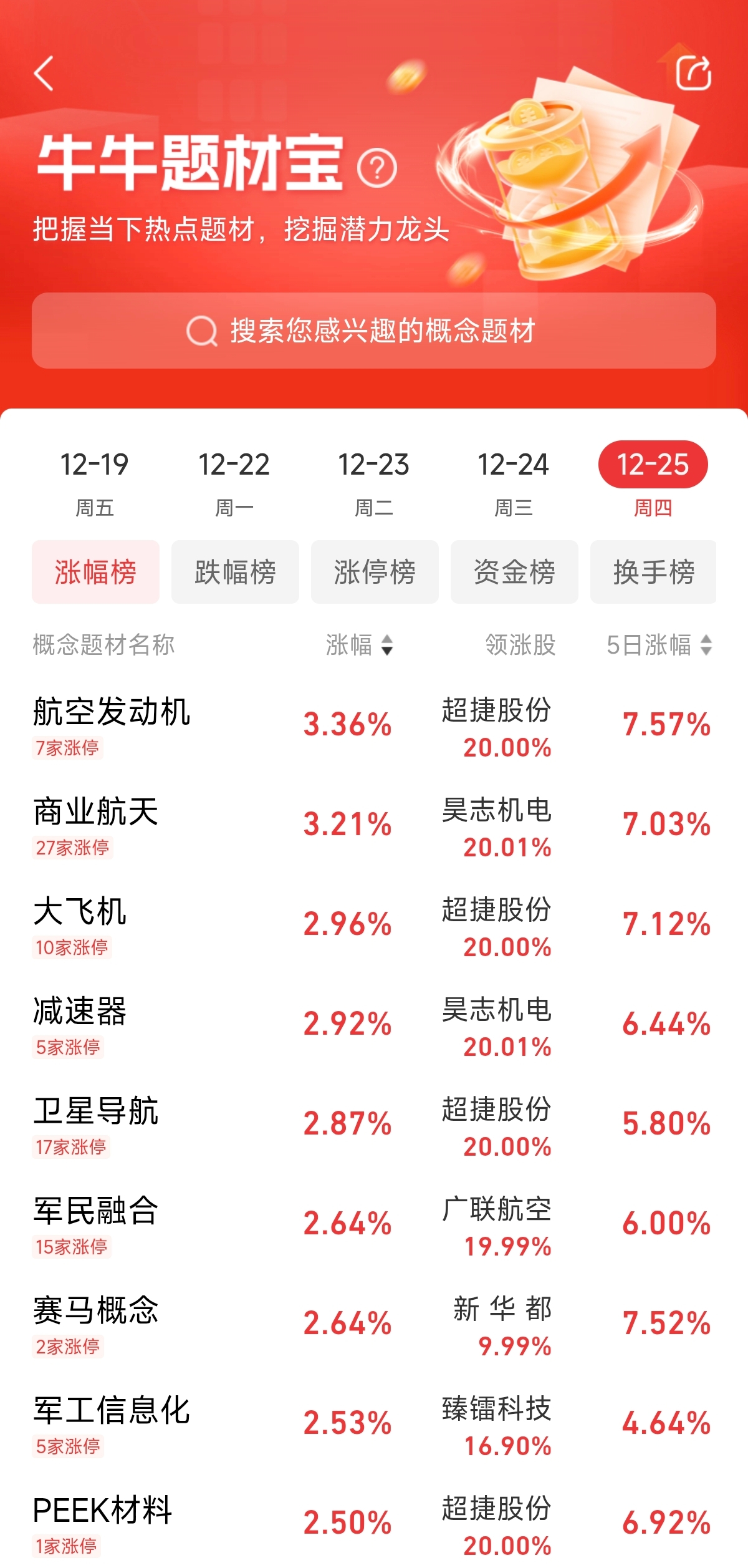 跨年行情,热点开花,个股分化大,一定要随时关注市场主线变化。如果投资人朋友没时间盯盘查资料,可以使用这个市场实时主线题材挖掘工具“题材宝”(点击解锁),会告诉你当前市场上的投资主线核心逻辑、领涨股、成分股资金流向信息。新朋友首次购买,还可以68元立减50,首月仅需18元,活动仅剩最后一周,点击查看详情>>