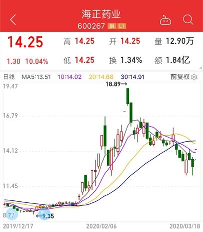 海正药业今日逆势一字涨停板,早盘一度封单超100万手,截至收盘,封单数仍有近71万手。在疫情爆发初期,海正药业就经历过一次爆炒,股价一度上涨至18.89元,自股价启动以来累计上涨超8成,不过随着国内疫情形势的好转,股价曾大幅回落,最大下跌幅度达34%。