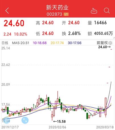 涉新冠肺炎药物的上市公司还有新天药业,近期该股股价逆势走强,连续4日涨停,市值增加超8亿元。