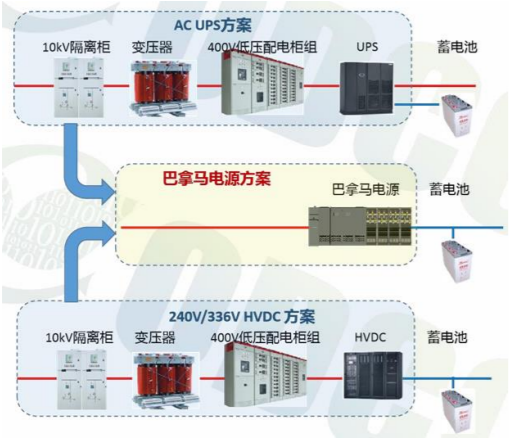 国内方面,阿里简化 AC UPS 或 240V/336V HVDC 环节,联合中恒电气、台达推出了巴拿马电源。相比传统方案占地减 50%、设备和施工量省40%。