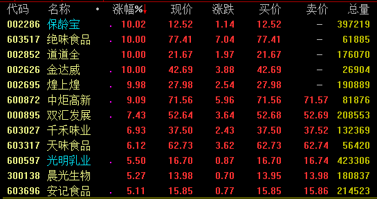 食品饮料板块再度走强 保龄宝4天斩获三涨停