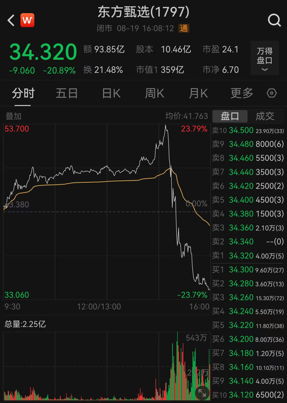 重挫超20%!东方甄选紧急辟谣!启动报警和司法流程