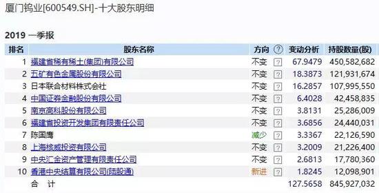 7月15日,多家公司披露了2019年半年度业绩快报。其中厦门钨业在快报中称,上半年归属于上市公司股东的净利润为7740.66万元,同比下降76.83%。截至2019年一季度,该股共有股东9.5万户。前十大股东中,赫然有证金、汇金和香港中央结算公司在列。