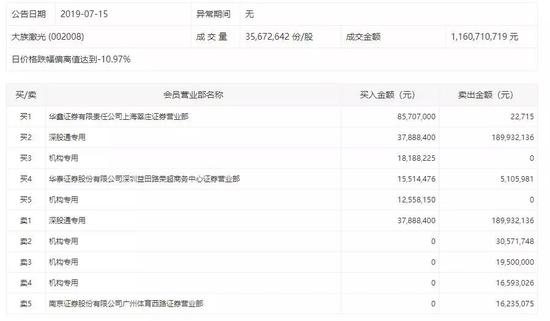 7月15日,深股通从大族激光大幅出逃,并与机构上演一场踩踏行情。交易所公开信息显示,深股通在买入3788.84万元的同时卖出1.9亿元,占当日成交额11.61亿元的16.37%。