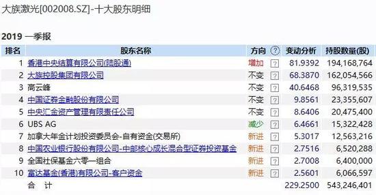 Wind数据统计显示,一季度共有63家机构持有大族激光股票,合计持股数量为4.62亿股,占流通股比例高达46.46%。