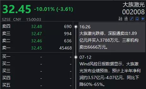还记得上半年被外资“买爆”的大族激光吗?这周末和“药中茅台”东阿阿胶业绩双双爆雷,今天股价一起被封死在跌停板上。