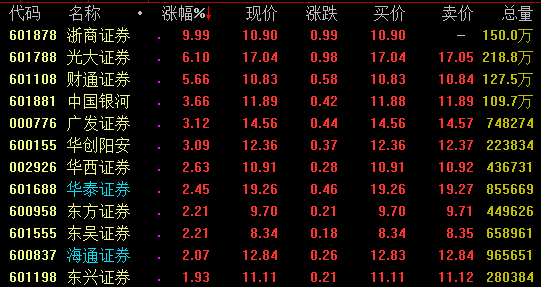 政策加持叠加市场回暖 助力券商板块持续拉升