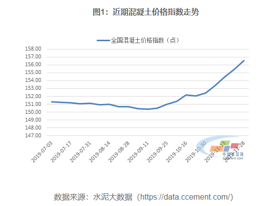 从水泥大数据研究院的数据来看,近期混凝土价格走势持续上涨。