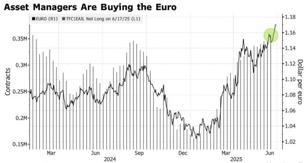 不过,相关数据表明,市场对于欧元进一步上涨仍抱有信心。DTCC数据显示,资产管理公司对欧元的看好水平达到自 2024 年初以来最高水平。对冲基金对欧元的看空情绪也降至四月以来最低水平。