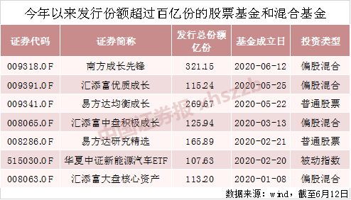 虽然A股ETF近期持续流出,但公募基金的发行却十分火爆,百亿规模以上的基金频频出现。Wind数据显示,以基金成立日看,截至6月12日,今年以来股票型基金和混合型基金的发行份额高达6058.51亿份。即便是经历了3月份全球股市的大幅回调,4月以来公募股票基金和混合基金的发行份额也高达2377.89亿份。