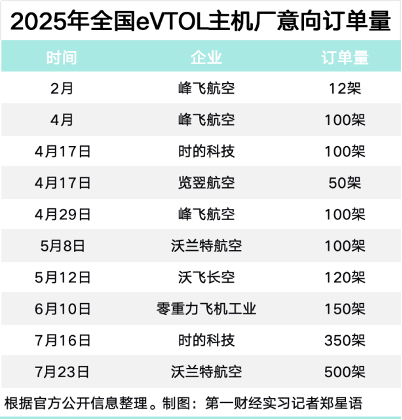 在正式跑通商业化之前,一些行业内头部的主机厂商已经接到了意向订单。第一财经记者梳理发现,今年eVTOL主机厂意向订单量已超过1580架。
