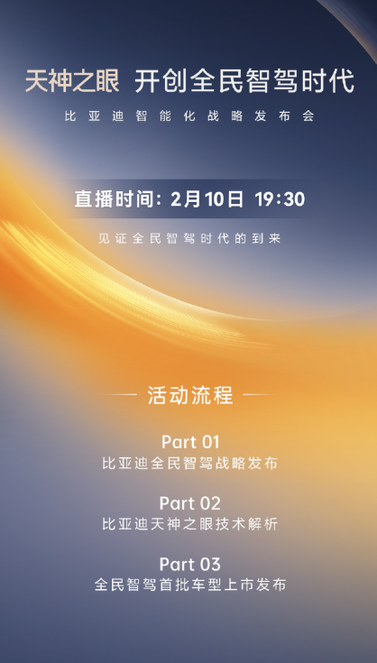 今晚19:30,比亚迪将举办智能化战略发布会,在这场发布会上,比亚迪将会宣布全面发力智能化,要让每一个人都畅享高阶智驾,开启智驾的新时代。