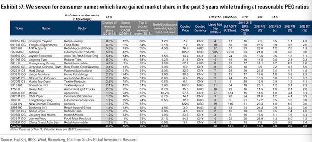 消费则是外资始终关注且青睐的主题,但鉴于部分股票过去几年已经被买得很贵,因此高盛关注估值更加合理的消费龙头。