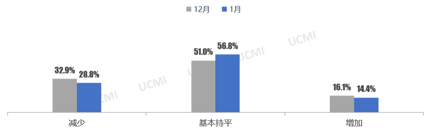 根据调查,1月二手车市场需求有所减少,其中表示市场需求“减少“的比例为28.8%。