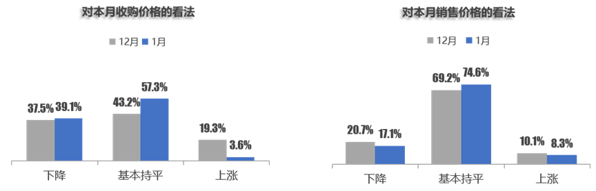 调查显示,1月二手车收购价与销售价格环比上月有所下降,其中认为收购价格“下降”的二手车经理人比例为39.1%;认为销售价格“下降”的二手车经理人比例为17.1%。
