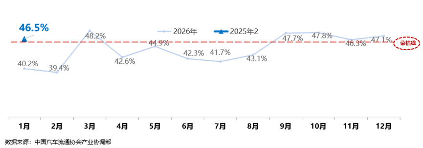 从二手车市场需求维度分析,反映出消费者购车决策周期有所延长,观望情绪加剧,同时也有部分春节返乡出行、家庭置换等刚性消费需求,2026年1月市场总体需求与去年12月略有回落。