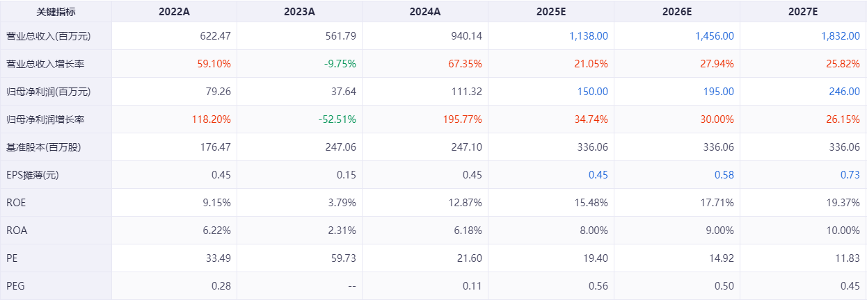 煜邦电力2024年业绩实现历史性突破,营业收入达9.4亿元,同比增长67.35%,归母净利润1.11亿元,同比大幅增长195.77%,主要受益于下游订单增长及储能业务开始爆发。