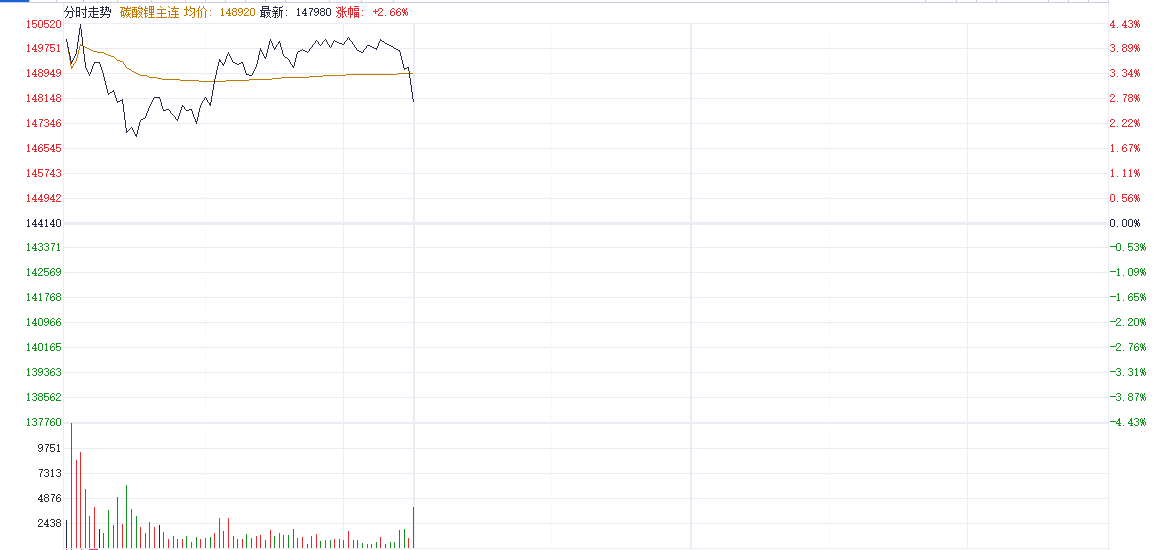 消息方面,碳酸锂主力期货今日盘中一度冲高至15万元/吨上方,截至发稿报14.80万元/吨,涨幅2.66%。其价格突破关键整数关口,有效提振产业链信心,成为板块上行的重要催化因素。
