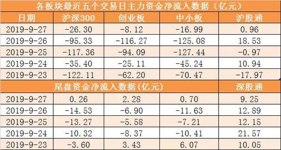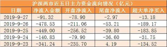 本周两市主力资金累计净流出1500.92亿元。其中周五(9月27日)主力资金开盘净流出78.90亿元,尾盘净流出2.97亿元,全天净流出91.32亿元。