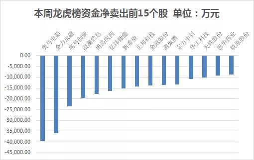 个股龙虎榜净卖出金额居前的15只个股分别为: