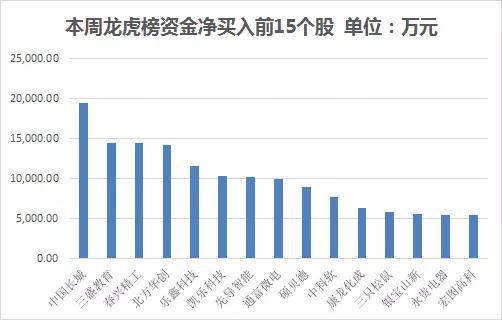 个股龙虎榜净买入金额居前的15只个股分别为: