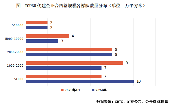 克而瑞地产研究发文称,2025年上半年代建新拓面积增速“止跌回稳”,代建市场呈现渗透率高但增速放缓、入局企业饱和的两大特征。30强企业的总合约面积达到10.19亿平方米,同比增长25%。行业内部整体保持“头部稳定、腰部发力、尾部洗牌”的格局。