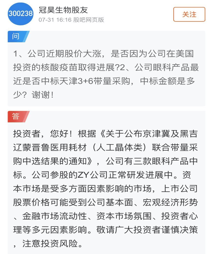 日前,冠昊生物在投资者互动平台表示,公司在京津冀等9地联盟(人工晶体类)带量采购已经中标。