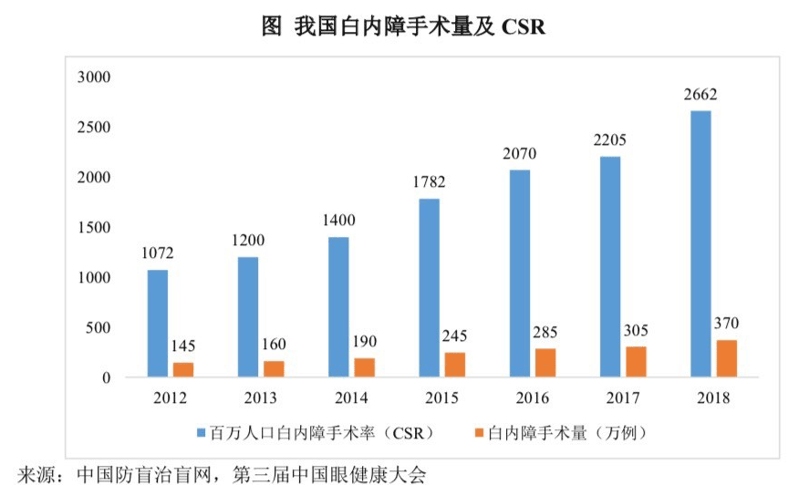 根据国家统计局 2018 年抽查人口比例及2019 年全人口数测算,白内障的患病人数预计达到 1.7 亿人,植入人工晶状体手术是当前治疗白内障的唯一有效方法。而且,目前我国人工晶体手术量远不及国际水平。可以说,人工晶体产业是我国医用耗材中当之无愧的蓝海。