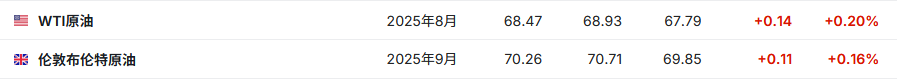 3. 截至发稿,WTI原油涨0.20%,报68.47美元/桶。布伦特原油涨0.16%,报70.26美元/桶。