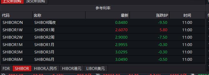 隔夜银行间同业拆借利率(Shibor)在 12 月 25 日跌破 1% 后,12 月 26 日,隔夜 Shibor 跌破 0.9%,为 0.848%。