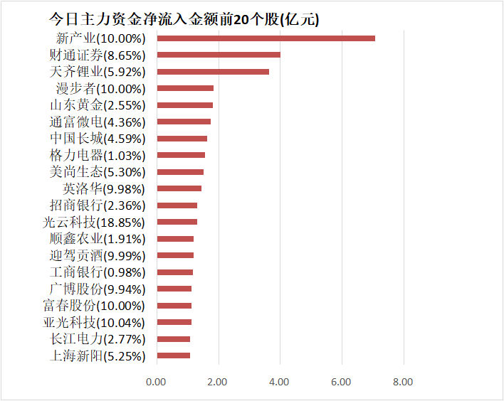 5、新产业主力资金净流入7.08亿元居首