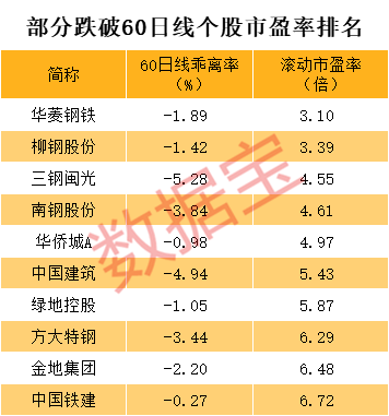 有分析人士表示,一些钢铁股估值较低,主要是净利增速较差,比如三钢闽光、南钢股份等钢铁股前三季净利同比下降均超过30%。相比较而言,净利高速增长的低估值股票,跌破60均线后,更加值得考察。
