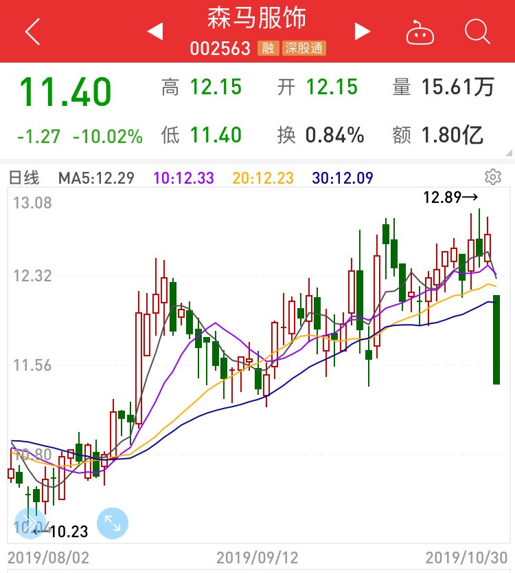 继昨日出现多只白马股跌停后,今天又有多只白马股遭遇跌停。包括纺织服装行业的森马服饰、电子行业的生益科技、医疗服务行业的通策医疗等。而下跌原因也跟此前大跌的白马股类似,就是前期股价涨幅较大,而三季报业绩增速相对偏低。比如今年大涨30%多的森马服饰,三季报净利增速仅2.79%。