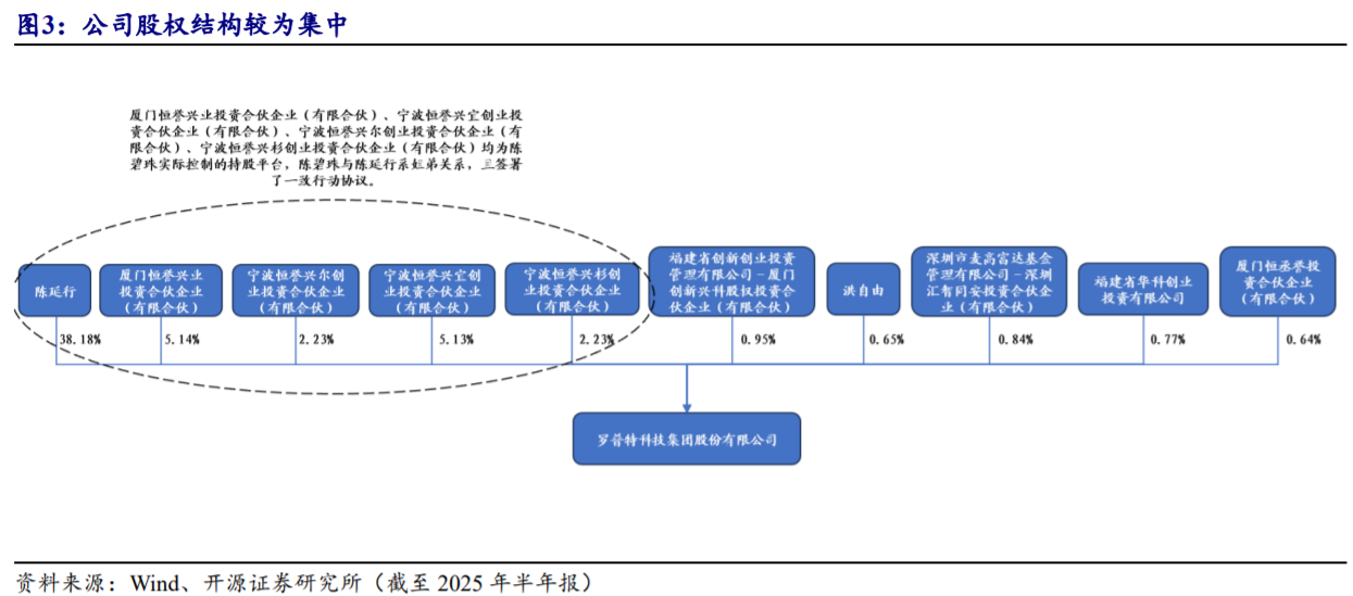 公司股权结构集中且稳定,实控人陈延行直接持有公司38.18%的股份,并通过其一致行动人陈碧珠间接控制公司14.73%的股份。