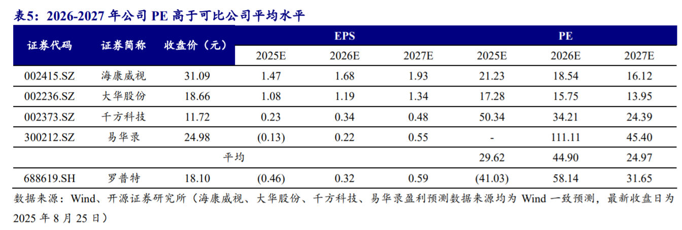 综上,随着公司传统主业的逐步复苏以及大模型一体机和机器人新业务的逐步开拓,我们预计公司2025-2027年将分别实现收入1.9/8.0/10.4亿元,同比分别增长33.9%、318.7%、30.0%;实现毛利率32.0%/32.6%/33.5%。