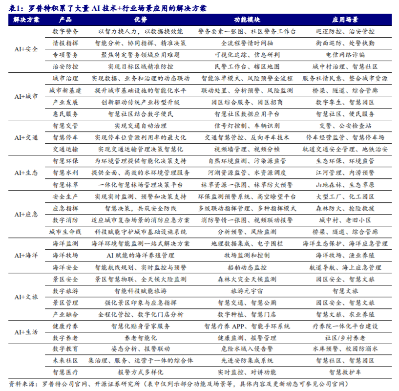 并积累了大量AI技术+行业场景应用解决方案。与此同时,公司在依托在智慧城市领域的技术积累和应用能力,逐步形成“打通技术到实战应用最后一公里”的能力,锻造出参与市场角逐的差异化竞争优势,促成了公司运用计算机视觉人工智能技术、大数据技术向各行业多领域延伸渗透,公司业务逐渐在应急、医疗、教育、市政、专业园区、农业、水利等行业不断拓展落地。展望未来,公司传统主业经营态势呈现显著改善,有望重回增长轨道;同时公司在2025年开辟的大模型一体机业务与机器人业务有望为公司打开新增长曲线。