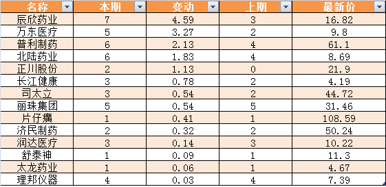 阳光私募持股且占流通股比例提升的公司有14只,其中辰欣药业、万东医疗、普利制药、北陆药业、正川股份私募持股比例提升1%以上,长江健康、司太立、丽珠集团私募持股比例提升0.5%以上。